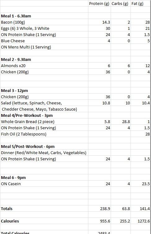 Also the ON Caesin I have at the end of the day is mixed with almond milk and whip cream hence the high fat content