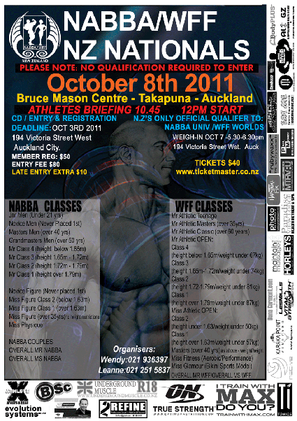 This event is also the NZ QUALIFIER FOR THE: NABBA UNIVERSE & THE WFF WORLDS
