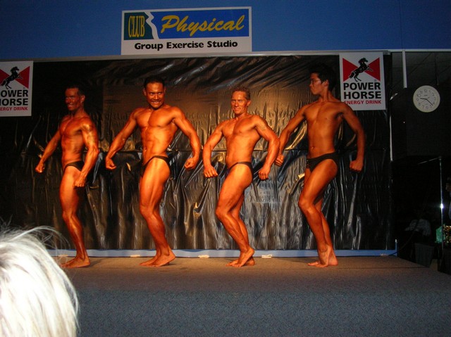 yo yo. cheers to pseudo for coming to the show. it was cool meeting you in person. (sorry i had to shoot off). yeah although i was the only person in my class, and made to stand on stage with those bigger guys, i actually felt quite confident and not as intimidated as i thought i'd be. and by the way, the pose down is by far the most fun part of being on stage in my opinion. good stuff with the photos too man. pity i forgot my own camera and none of my mates brought theirs... :?
