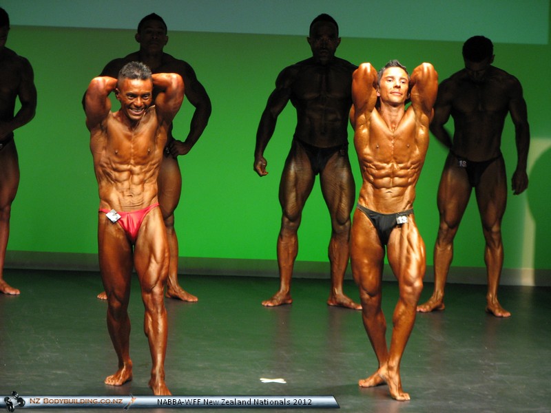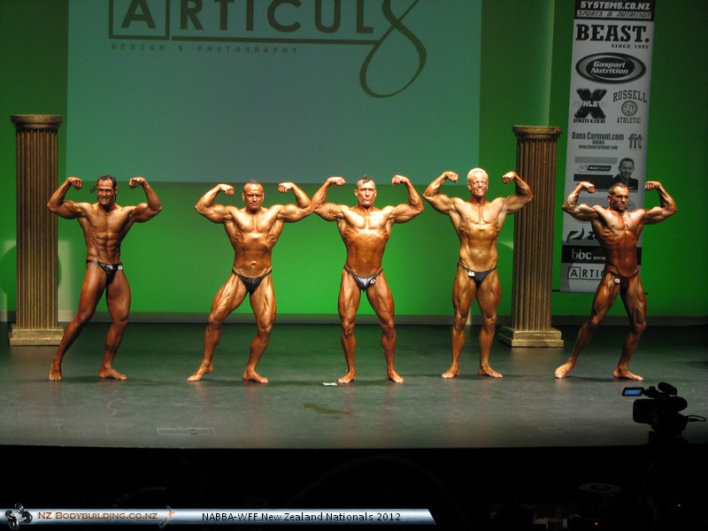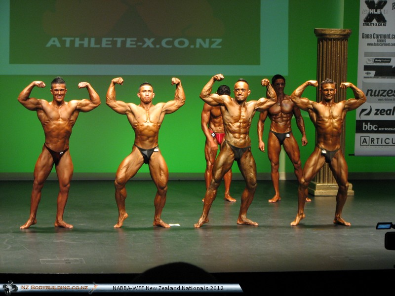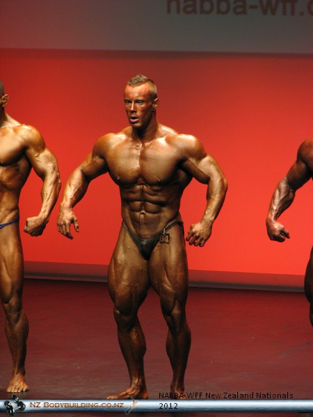 It was a display of full muscle bellies and conditioning as good as any amateur I've ever seen displayed on stage in NZ, up there with Darryn Onekawa when he won mr NZ In 2009. Sitting at about 5'9 and weighing about 107-108 at just the right body fat level, he walked away with the class. 2nd was a no brainer but the battle for 3rd was pretty tight with Nate snatching it from Matt Clark.