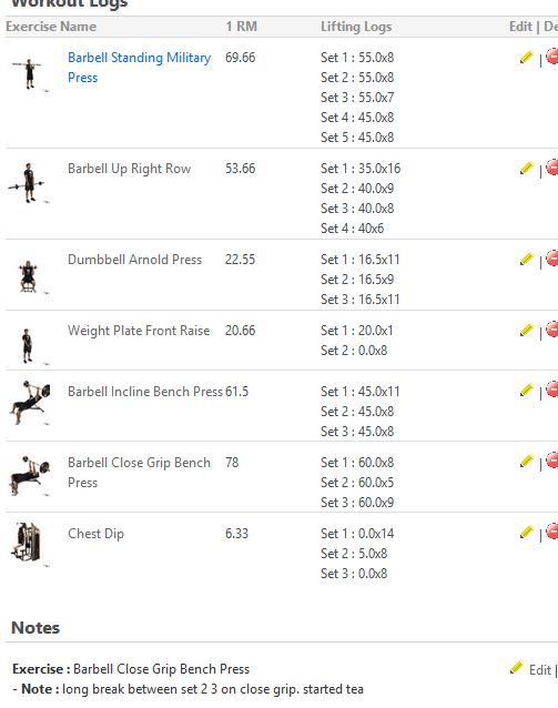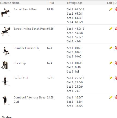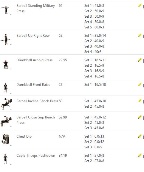 Nothing exciting in todays workout. Noticed back slighly sore when doing curls nothing to major.