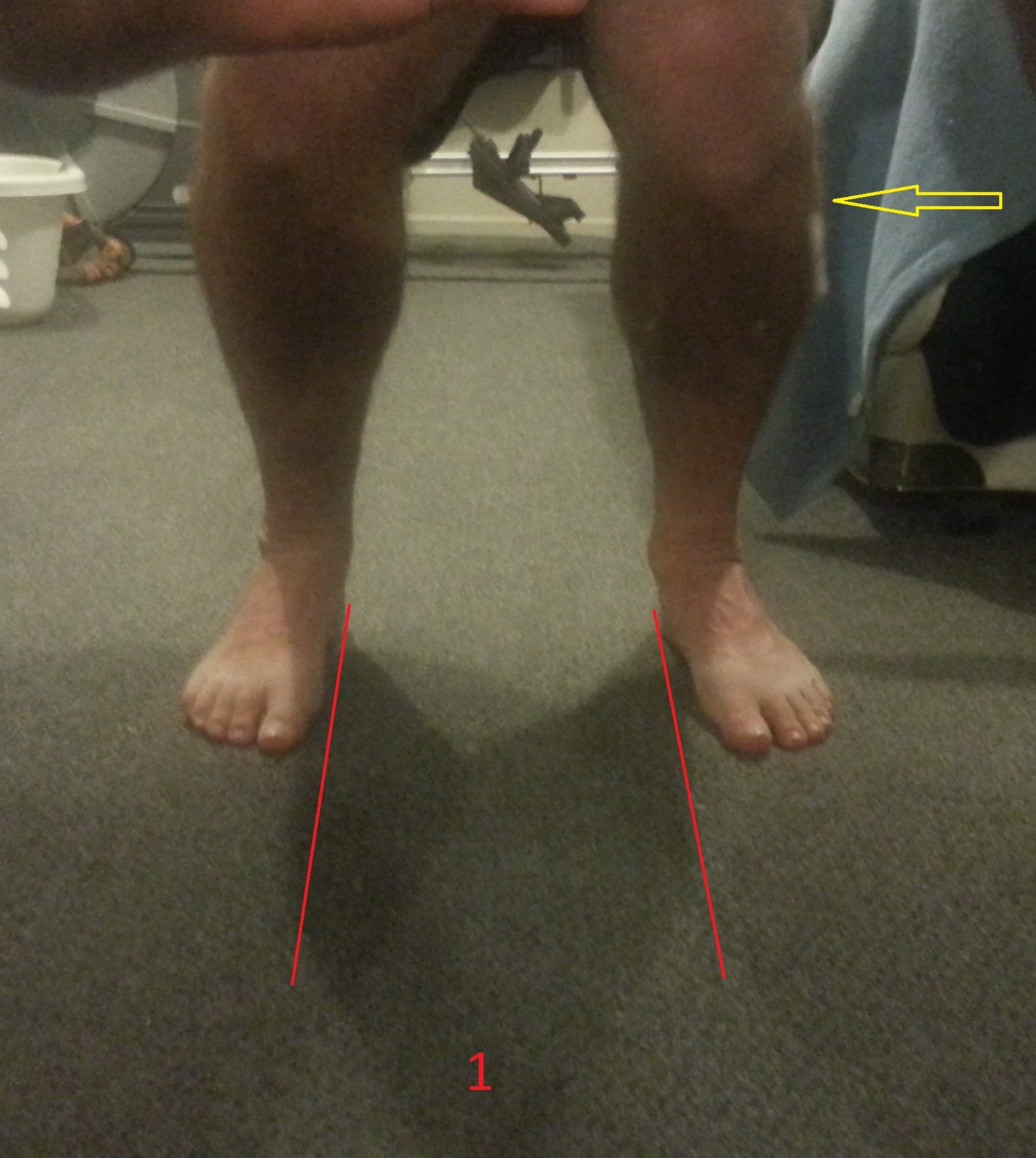 so squating down with feet near paralle and heels on the ground, the first thing I notice is my right knee tweek inwards minorly.