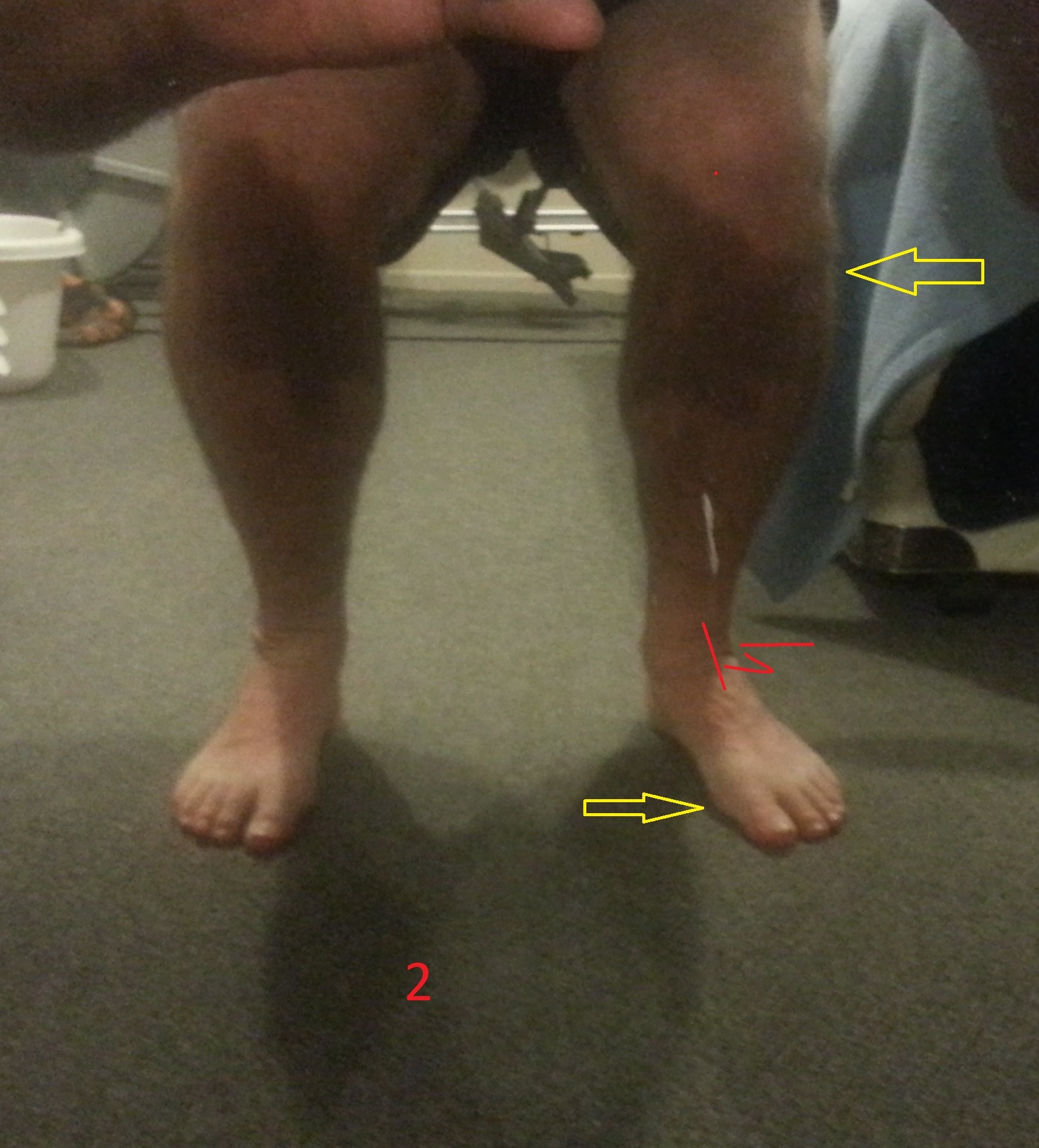 If i have my feet apart at a more realistic width the tightness roates a little more forward on the right ankle