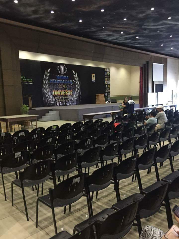 Registration as in any competition was tedious, the gym was like 50 years out of date, only one toilet facility to serve alls needs, and guess what the cubicles were only separated by walls 4 foot high, and this is a unisex facility. To top it off the toilets were not flushable you had to ladle water out of a bucket, and there was no toilet paper. I kid you not!!!!!! So if you were in any allusion that this was not a third world country before then you were not any more!.