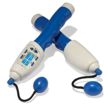 The programmable handheld units know how you're performing for your height and weight, they provide a regular beat for you to jump to, and a rope snap sound simulation. And if you're lonely or tired, it will even talk to you.