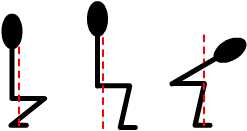 Now look at the middle image. This is trying to keep a straight back with poor flexibility. As the red dotted centre of gravity illustrates, I fall over backwards when I try this. :D